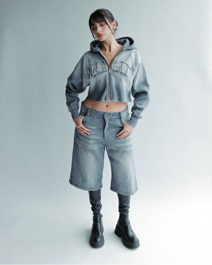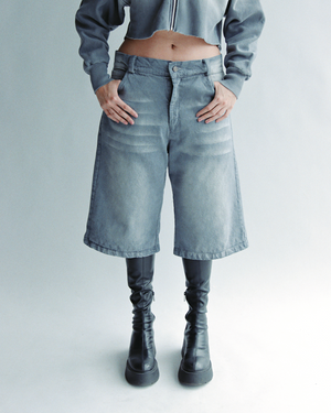 Gray Washed Denim Jorts Mujer